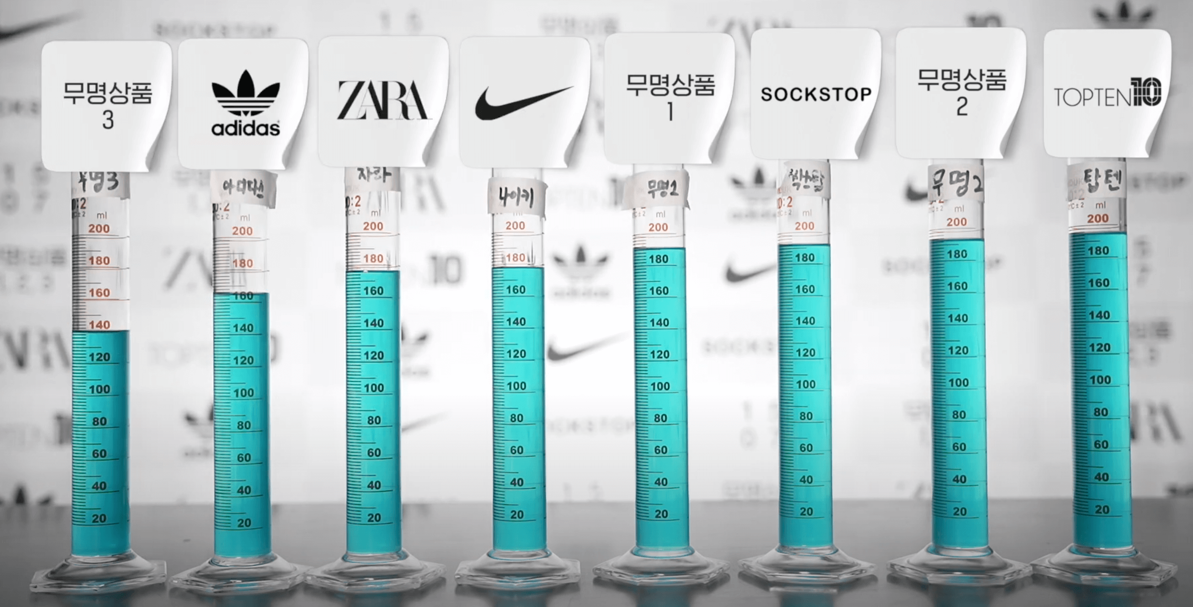 '페어플레이'라는 여러 실험을 진행하는 유튜브 채널에서 여러 제조사의 양말을 구매한 후, 땀 흡수량을 비교하는 실험을 진행했습니다. 여러 유명 메이커들과 더불어 무명의 브랜드 제품까지 함께 비교한 실험이었습니다. 과연 어떤 제품이 가장 많은 땀 흡수량을 보였을까요?