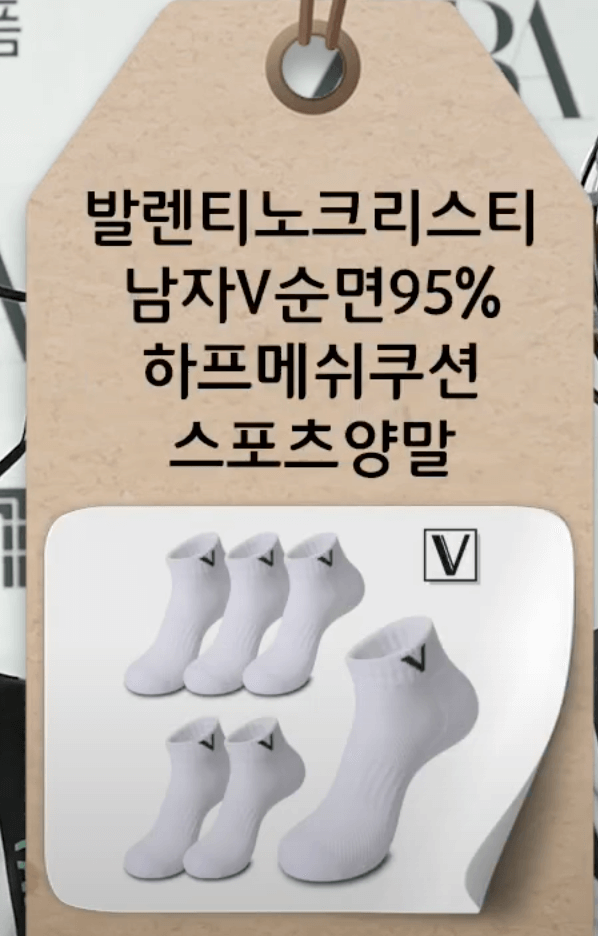 발렌티노 하프 쿠션 헬스 V 순면 스포츠양말 두툼한 바닥 파일 5켤레